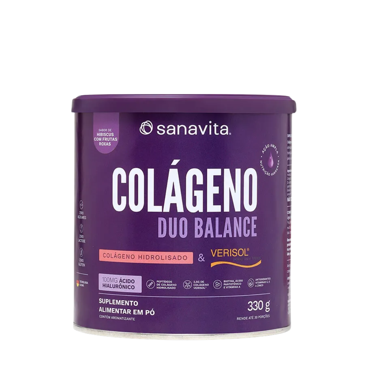 O **Colágeno Duo Balance Sanavita** é um suplemento em pó desenvolvido com tecnologia avançada que combina colágeno hidrolisado com nutrientes cuidadosamente selecionados. Sua fórmula apresenta um sabor agradável de **hibiscus e frutas roxas**, tornando o consumo diário mais prático e prazeroso.