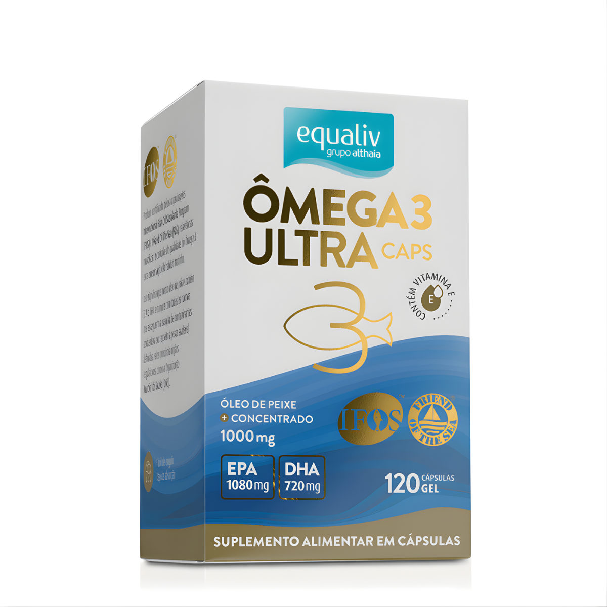 O **Ômega 3 Ultra Caps Equaliv** é um suplemento alimentar desenvolvido para quem busca uma fonte concentrada e pura de **ômega 3**, extraído de óleo de peixe de alta qualidade e com **certificação internacional IFOS (International Fish Oil Standards)** — um dos selos mais respeitados do mundo em pureza e segurança.